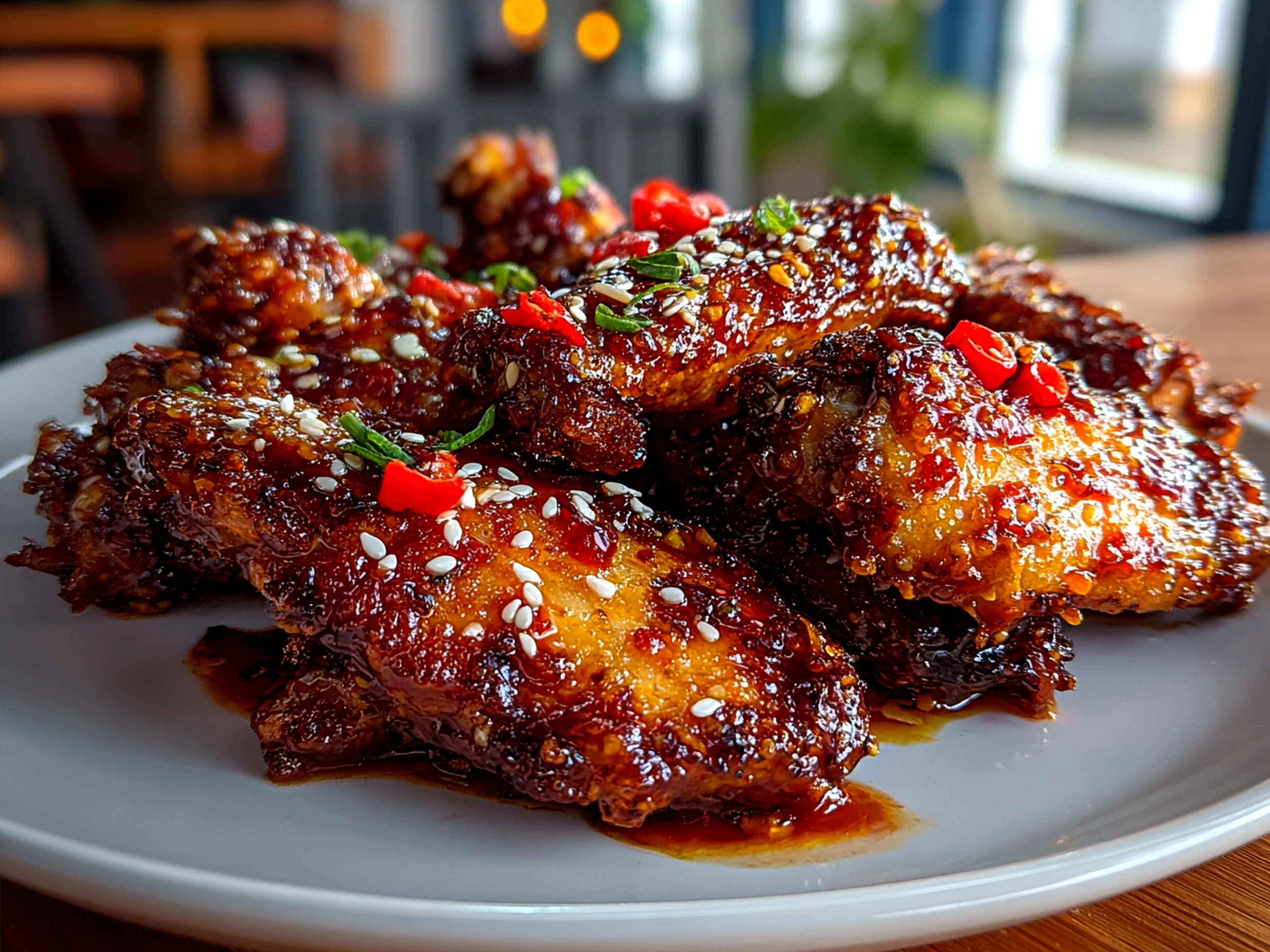 The kitchen smelled like an Asian market at dusk—bright, fragrant, with a hint of smoky sweetness. That moment, sharing baked sweet chili wings with Kim, wasn’t just about snacking; it became a ritual of sorts. We ate slowly, savoring each bite together and talking about summer nights and city escapes. These wings, crispy on the outside but sticky from the sauce, felt like a bridge connecting flavors and memories.