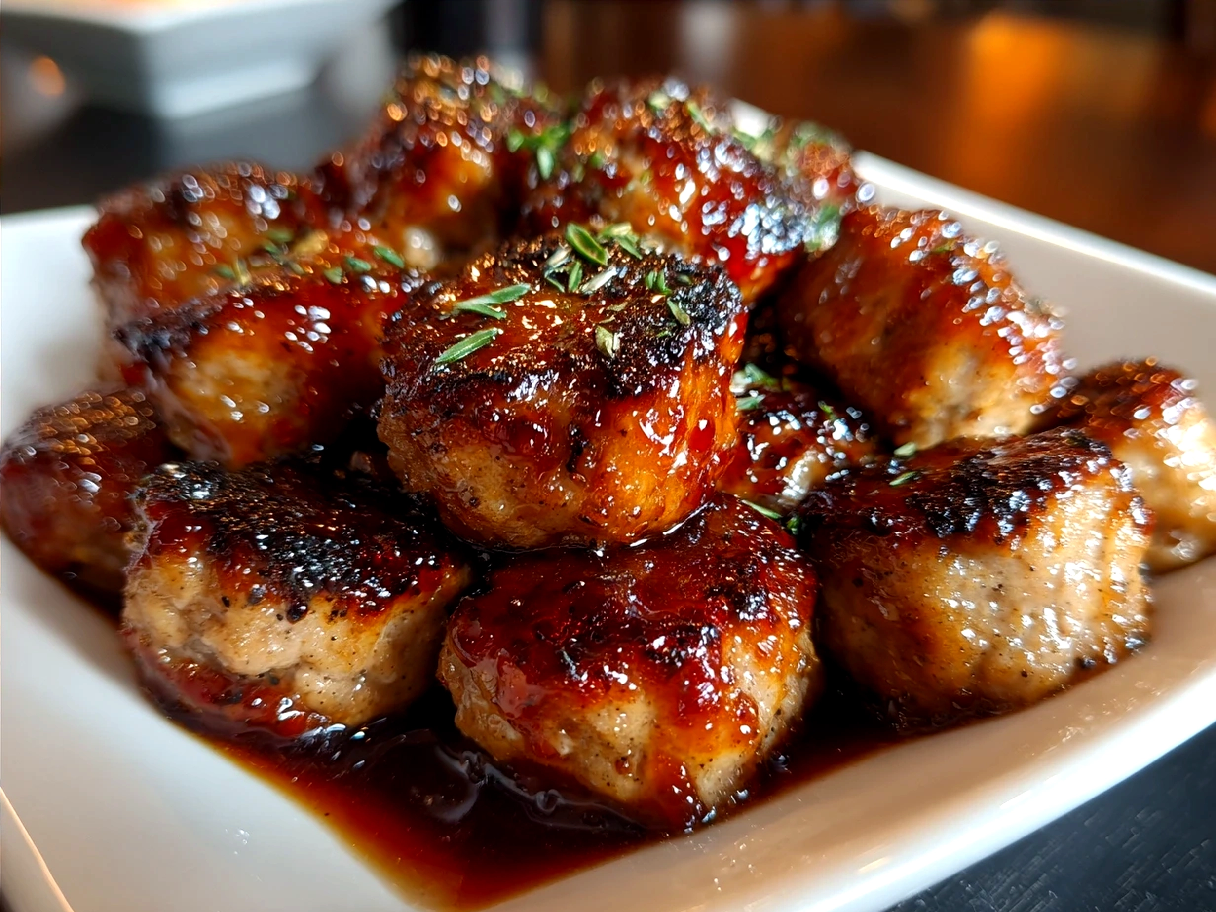 - Watch carefully. Your BBQ Sausage Bites develop a deep, sticky texture as you approach readiness. The rendered fat will bubble, and the barbecue aroma will fill your kitchen or backyard.