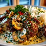 Gordon Ramsay’s Beef Stroganoff is a rich and creamy Russian-inspired dish featuring tender strips of beef cooked with mushrooms and onions in a savory sour cream sauce, perfect for a comforting dinner.