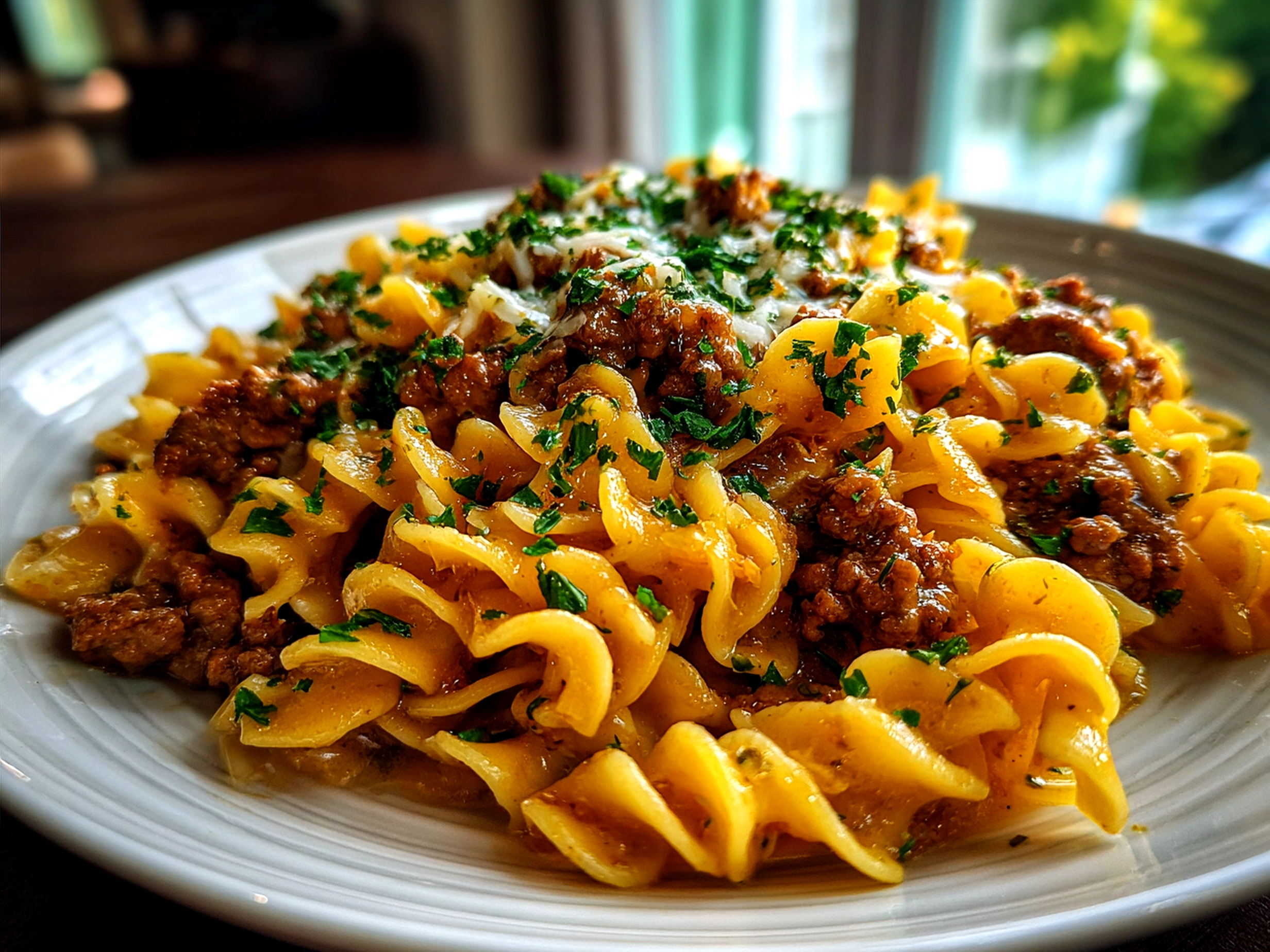 - Serve immediately over cooked egg noodles or your preferred ground beef pasta dish. Your kitchen will be filled with a comforting aroma—a sign that this Ground Beef Stroganoff is ready to be shared.