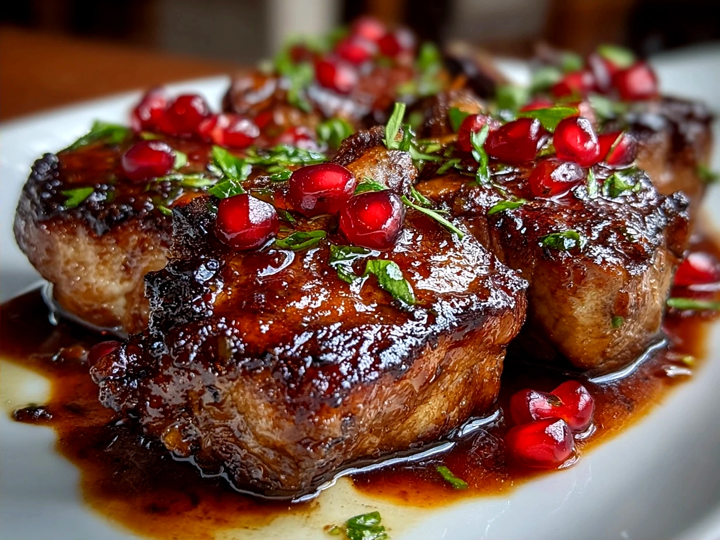 Succulent lamb chops glazed with a rich, tangy pomegranate sauce that perfectly balances savory and sweet flavors for an elegant dinner experience.