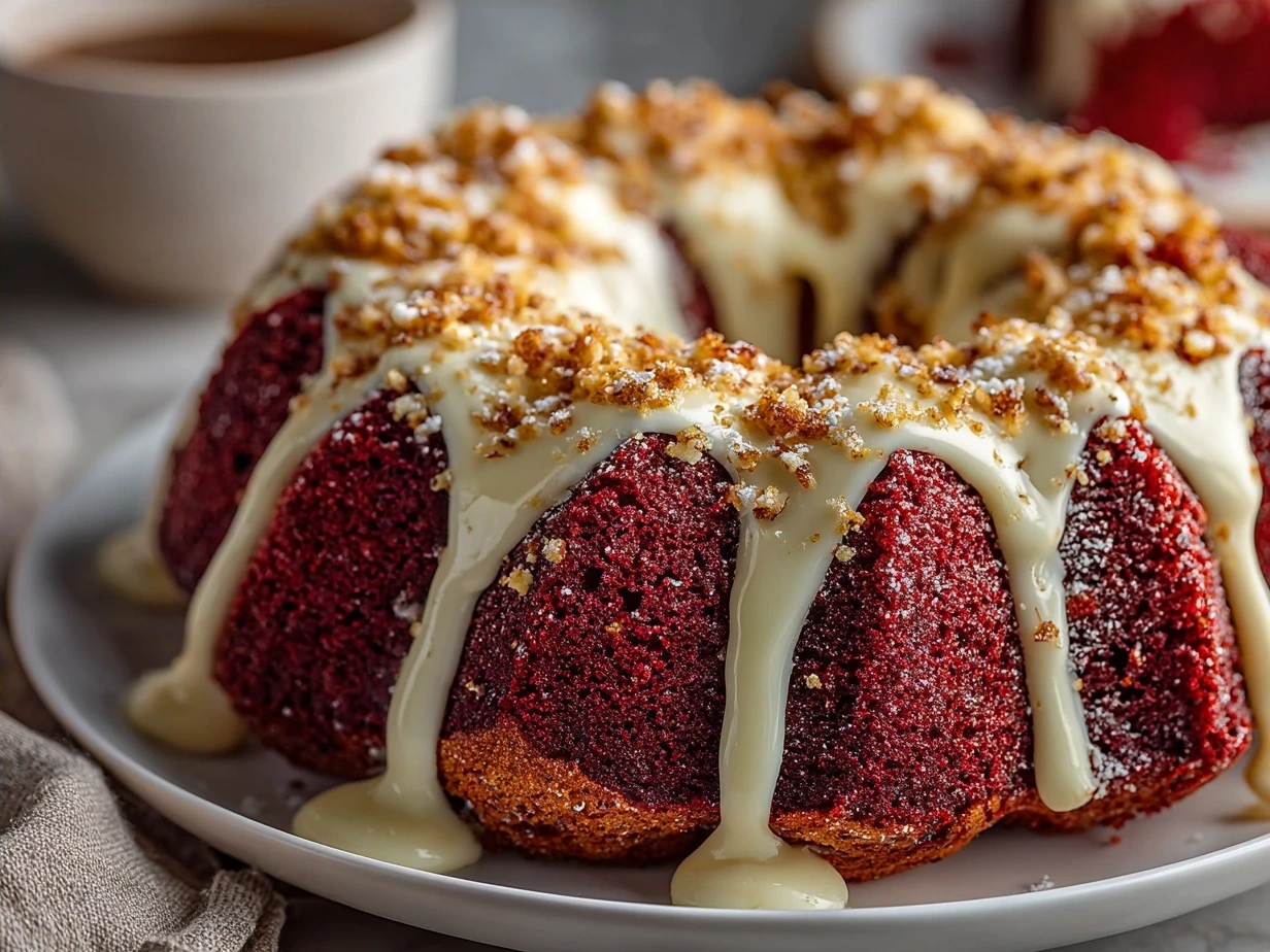 This luscious Red Velvet Cream Cheese Bundt Cake features moist, vibrant red layers paired with a smooth cream cheese filling and a tender crumb, perfect for celebrations or a decadent dessert.