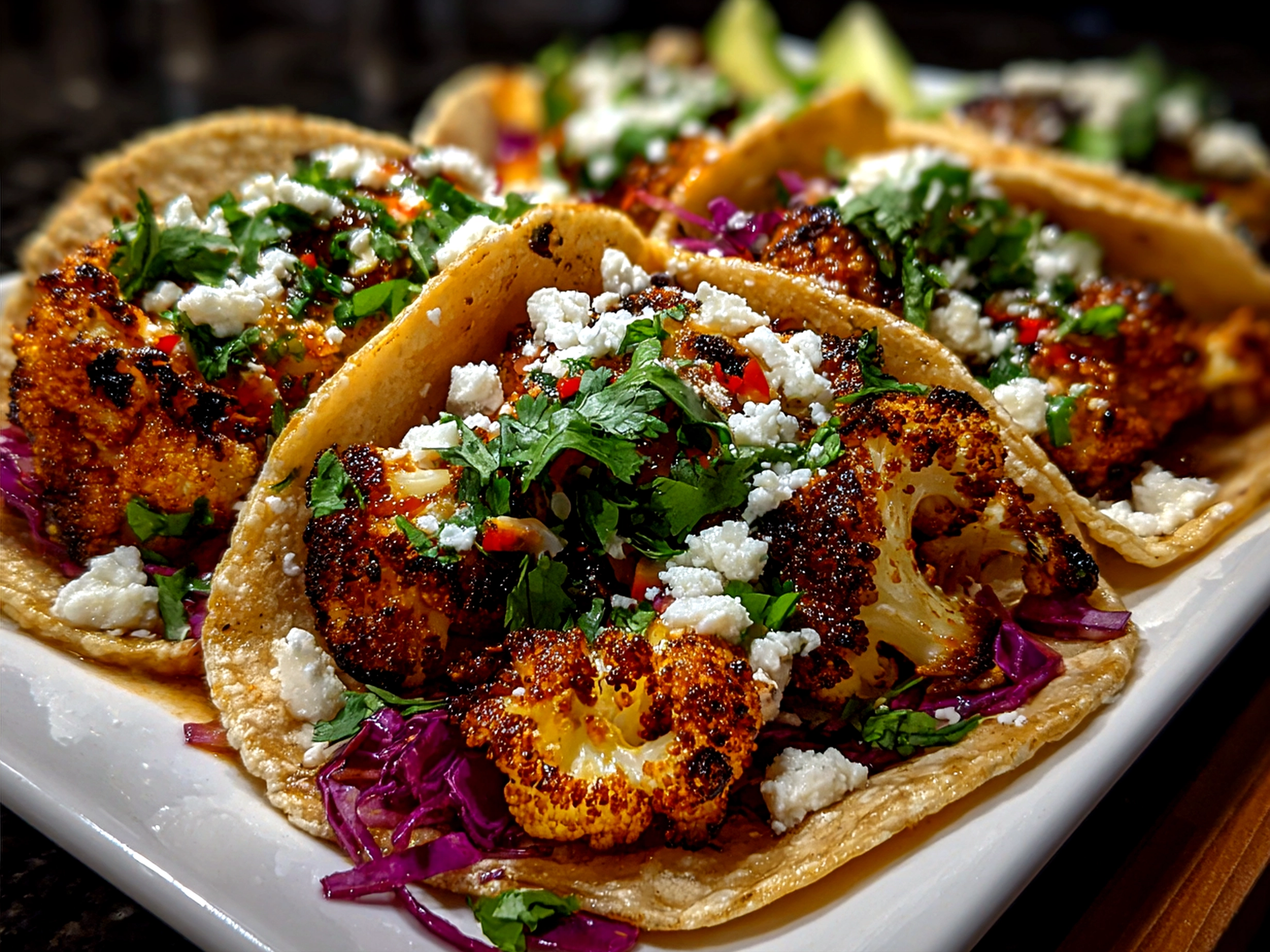 • How do I know when my roasted cauliflower tacos are properly done? Look for golden-brown edges with some flecks of char. The florets should be tender but not mushy. You’ll smell the smoky spices and notice the kitchen filling with warm, spicy aromas.