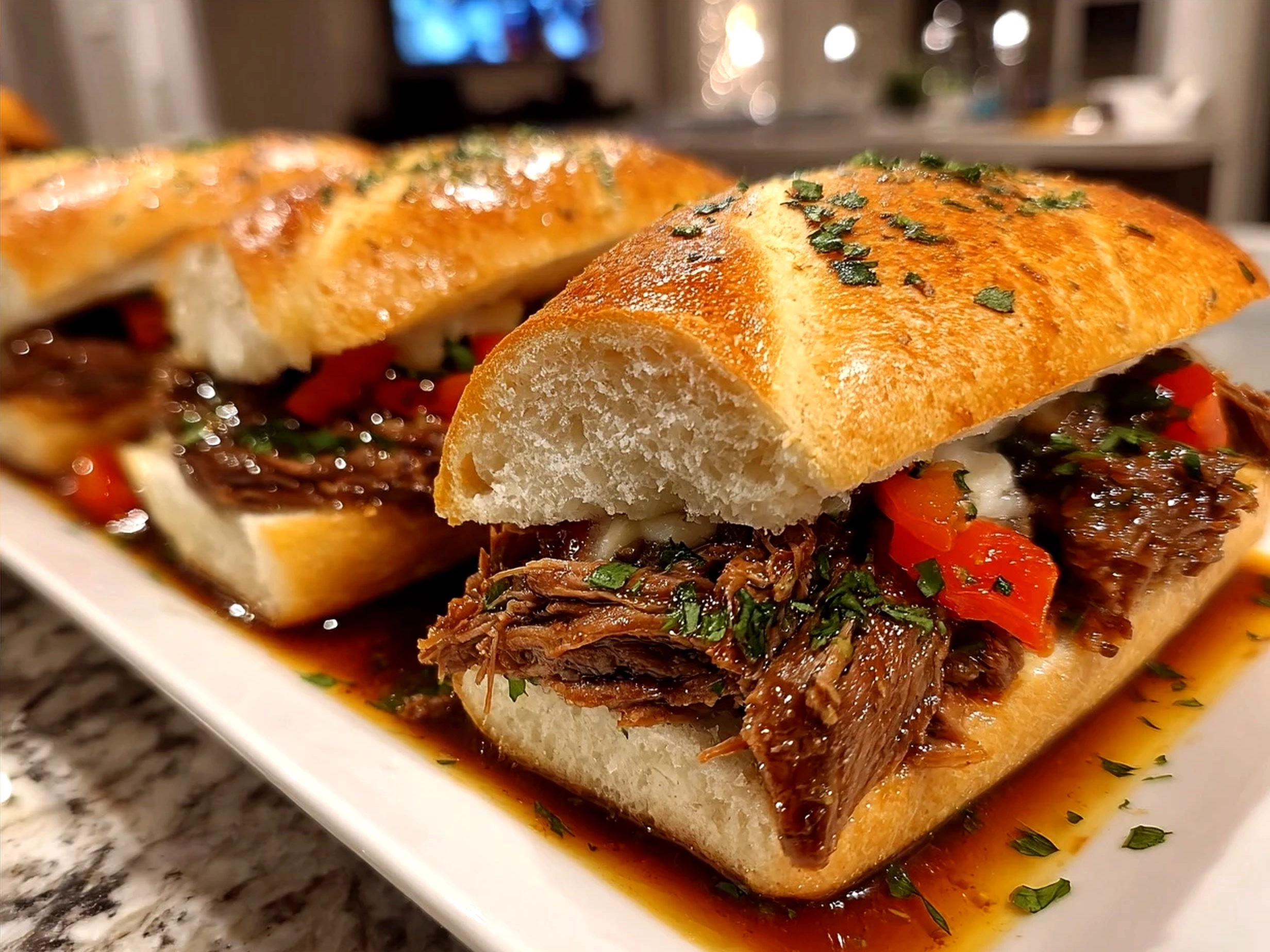 Tender, flavorful Italian beef slow-cooked to perfection and served juicy on crusty rolls, these sandwiches are a comforting and easy meal perfect for any occasion.