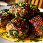 I first encountered spinach garlic meatballs on a chilly autumn afternoon during a small family gathering that seemed to pause the rush of the season. My aunt, a quiet but skilled food storyteller, brought these meatballs as a shared surprise nestled in a rustic ceramic bowl. The room filled with the heady aroma of garlic mingling with fresh spinach, a scent that felt both homespun and graciously adventuring beyond ordinary meatballs. As the golden light from the late afternoon filtered through the kitchen curtains, the sizzling sound of those meatballs cooking became a heartbeat rhythm for the room. Each bite was a porous moment—moist, savory, and deeply satisfying—the kind of food that stitches together memory and flavor in ways few dishes can. It wasn’t long before my curiosity about spinach garlic meatballs grew beyond just tasting; I wanted to understand how this savory meatball recipe wove ground meat, spinach, and garlic into such a cohesive narrative.
